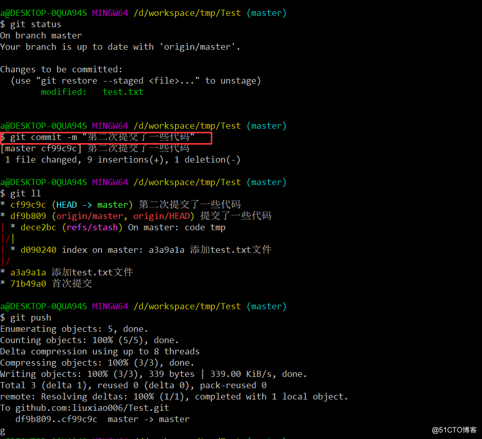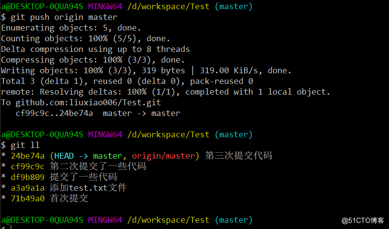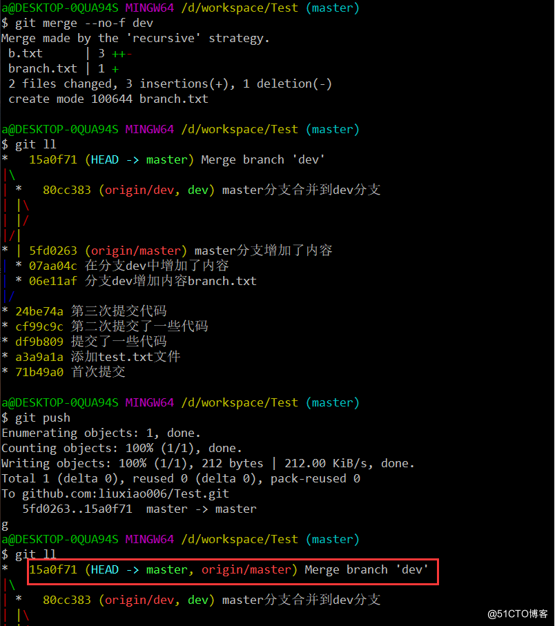总结:可以看到成功合并到master分支,并且推送到远端分支。
