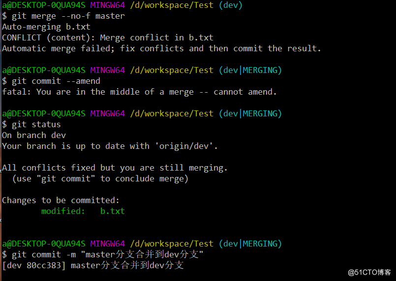 这样坐是为了将冲突在dev分支解决,然后再将dev分支代码合并到master,这样可以最小限度污染master分支代码。