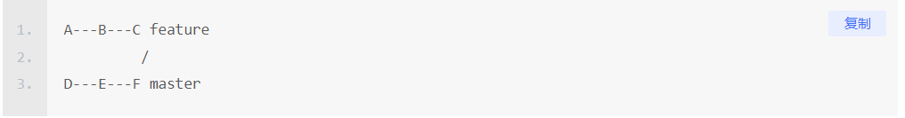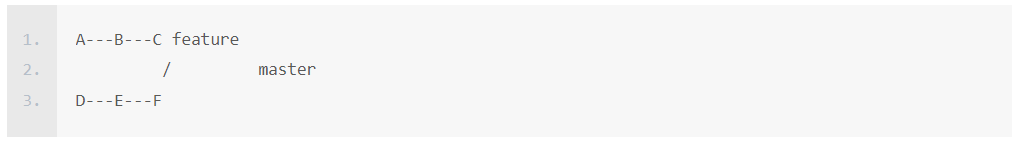 因为 feature 就在 master 的下游,所以直接移动了 master 的指针,master 和 feature 都指向了 C。而如果执行了 git merge --no-ff feature 的话,是下面的结果: