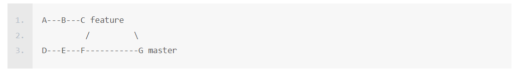 的提交历史。所以如果你根本不在意提交历史,也不爱管 master 干不干净,那么 --no-ff 其实没什么用。不过,如果某一次 master 出现了问题,你需要回退到上个版本的时候,比如上例,你就会发现退一个版本到了 B,而不是想要的 F,因为 feature 的历史合并进了 master 里。