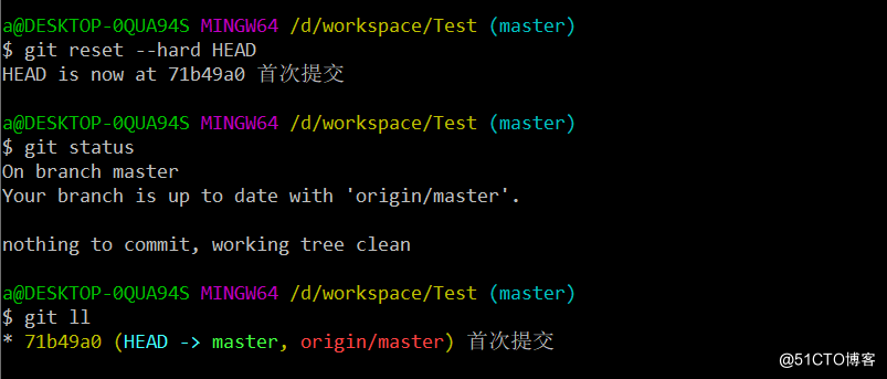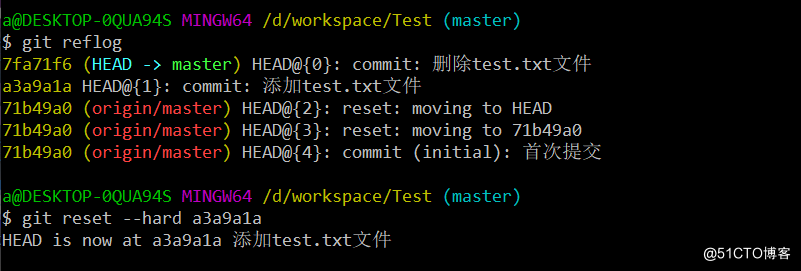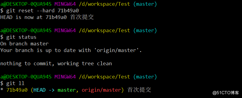 git reset --hard [索引] : 本地库索引移动的同时,重置暂存区,重置工作区