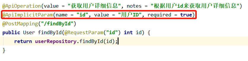 @ApiImplicitParam(name = "id", value = "用户ID", required = true)