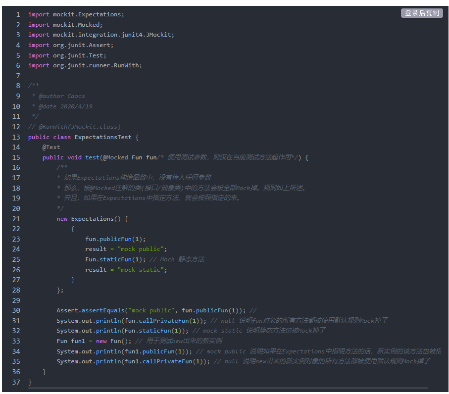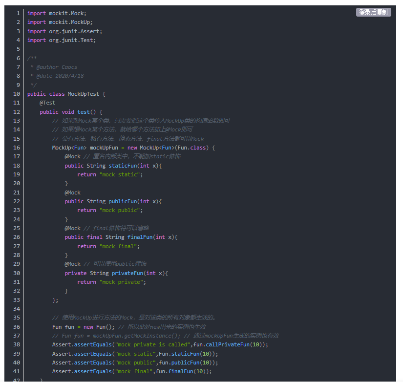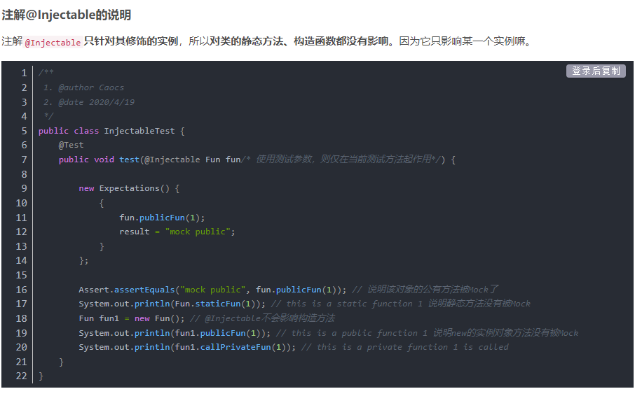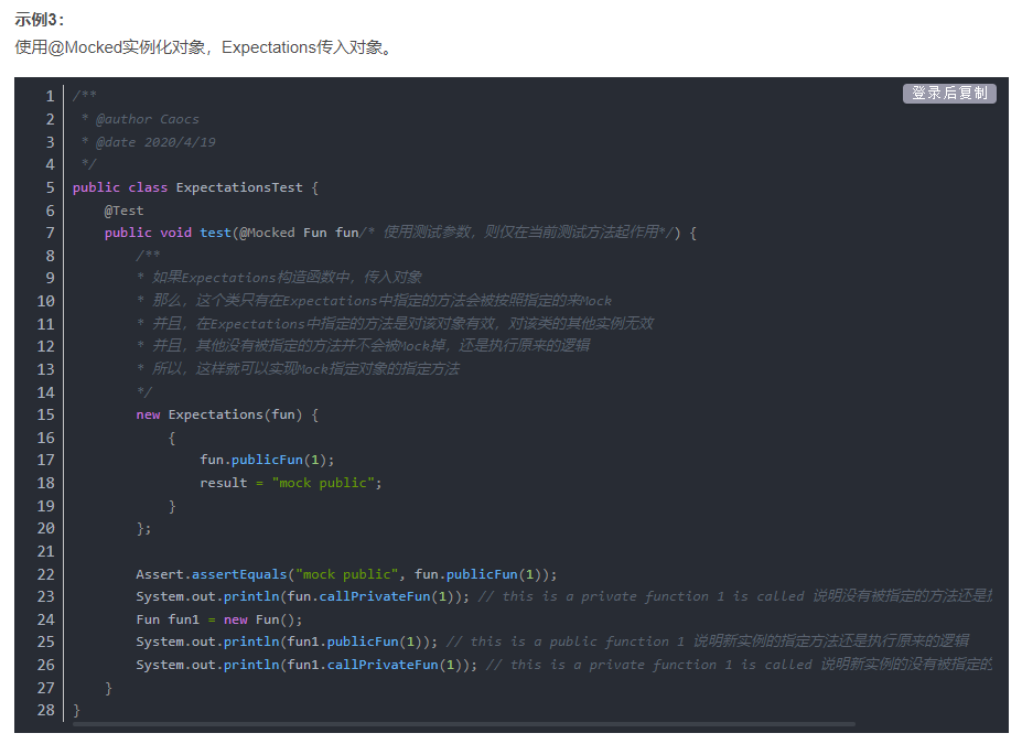 其实我从来没用过哈哈哈哈。借用一下JMockit中文网的代码。