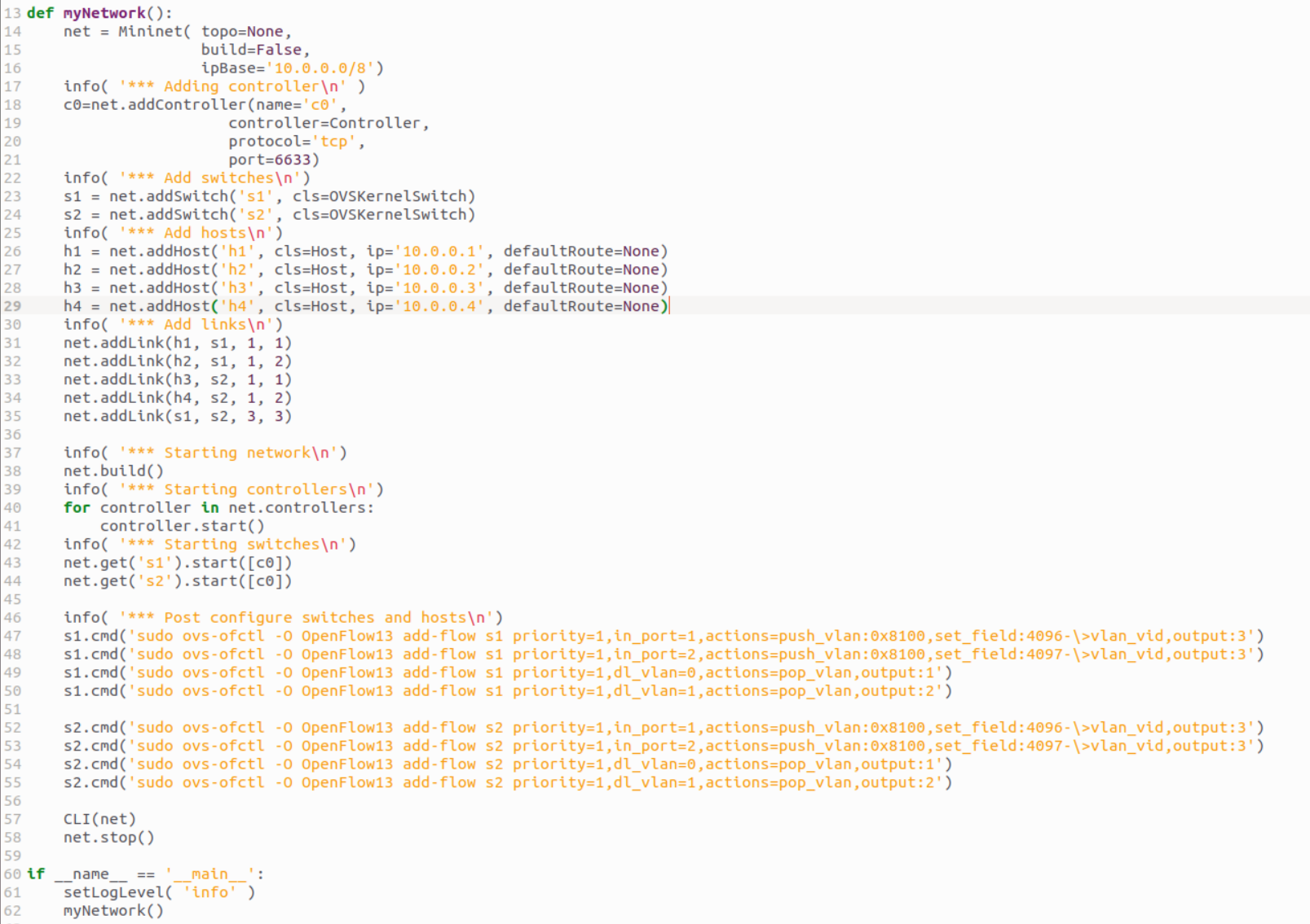 首先,老师给出的文档中题目s1的ip地址与下文不符,导致我执行sudo ovs-vsctl show时正常却ping不通,经过很长时间对输入的命令的审查也没有找到错误,是在我对比示例中s1与s2的ip地址才发现:s1和s2的ip地址的网络号应相同!这才知道应将190.168.0.100改为192.168.0.100。
