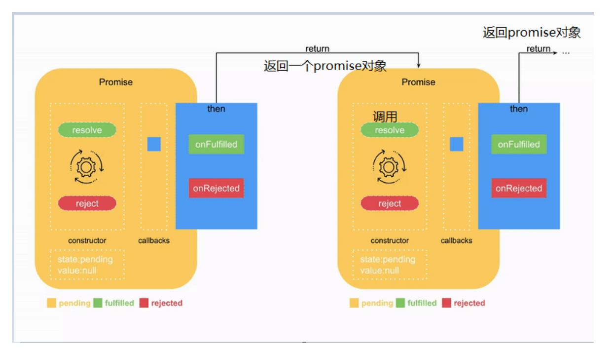 //promise只能满足于一种状态,进入到成功就成功了,失败就不会调用 var promise = new Promise((resolve, reject) => { // 成功的函数和失败的函数调用,都可以传参 resolve('成功了') reject('失败了') }) // then的链式调用,默认只有第一个能接收到resolve的参数,如果后面也想接收,就需要return promise.then((res) => { console.log('第1次then', res) //成功了 return '成功成功' }) .then((res) => { console.log('第2次then', res) //成功成功 return '成功成功' }) .then((res) => { console.log('第3次then', res) //成功成功 return '成功成功' }) .then() //值穿透 当你的then没有处理,它会给到下一个来处理 .then((res) => { console.log('第n次then', res) //成功成功 })