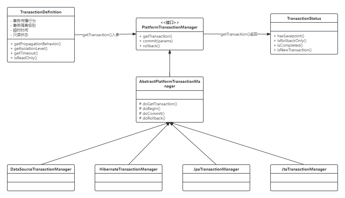 核心类:TransactionTemplate 或 PlatformTransactionManager。