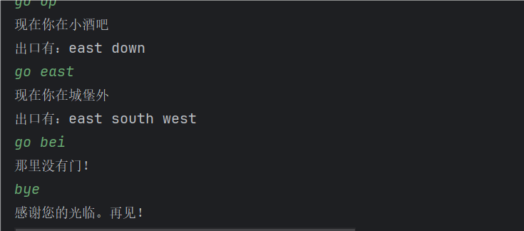 System.out.println("迷路了吗? 你可以做的命令有 :go bye help");