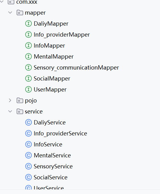 规划好数据库后定义了各个表对应的类,并完成了数据库接口和service类。