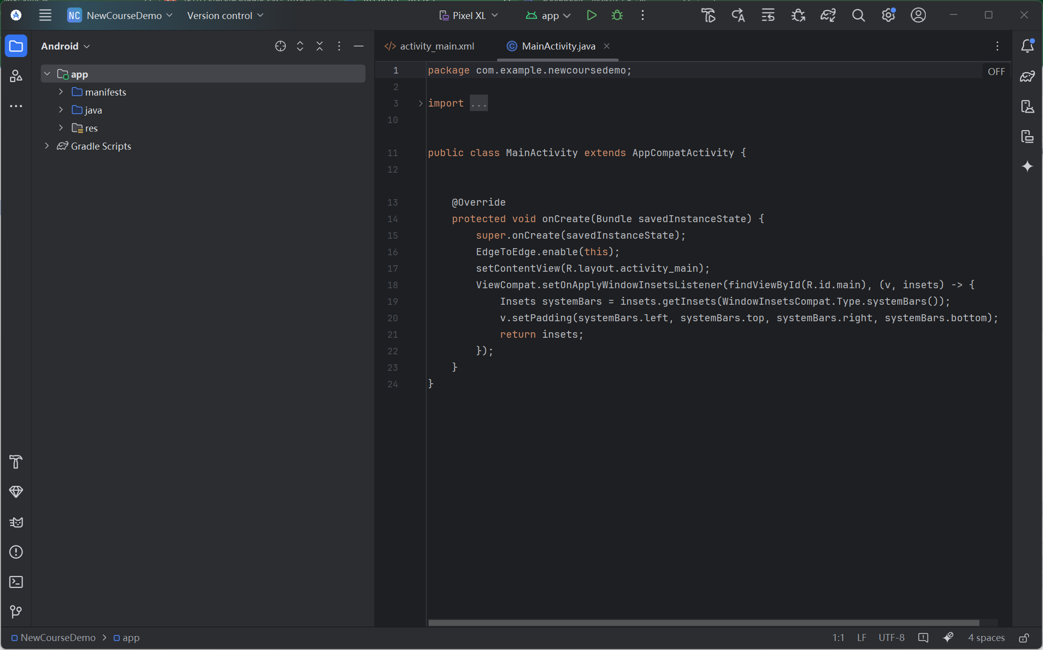 之后创建一个AS工程,就取名为NewCourseDemo!//使用的是groovy