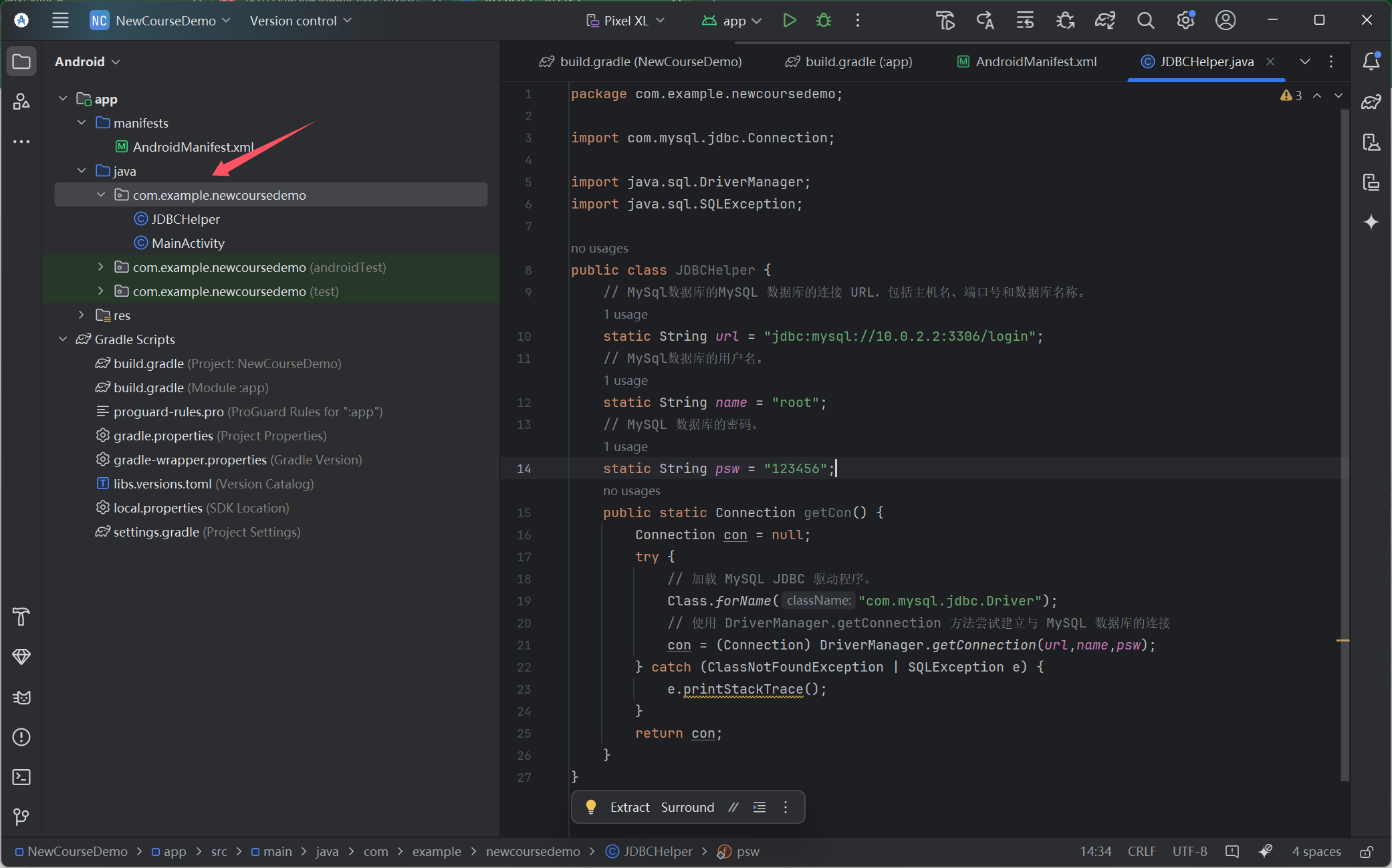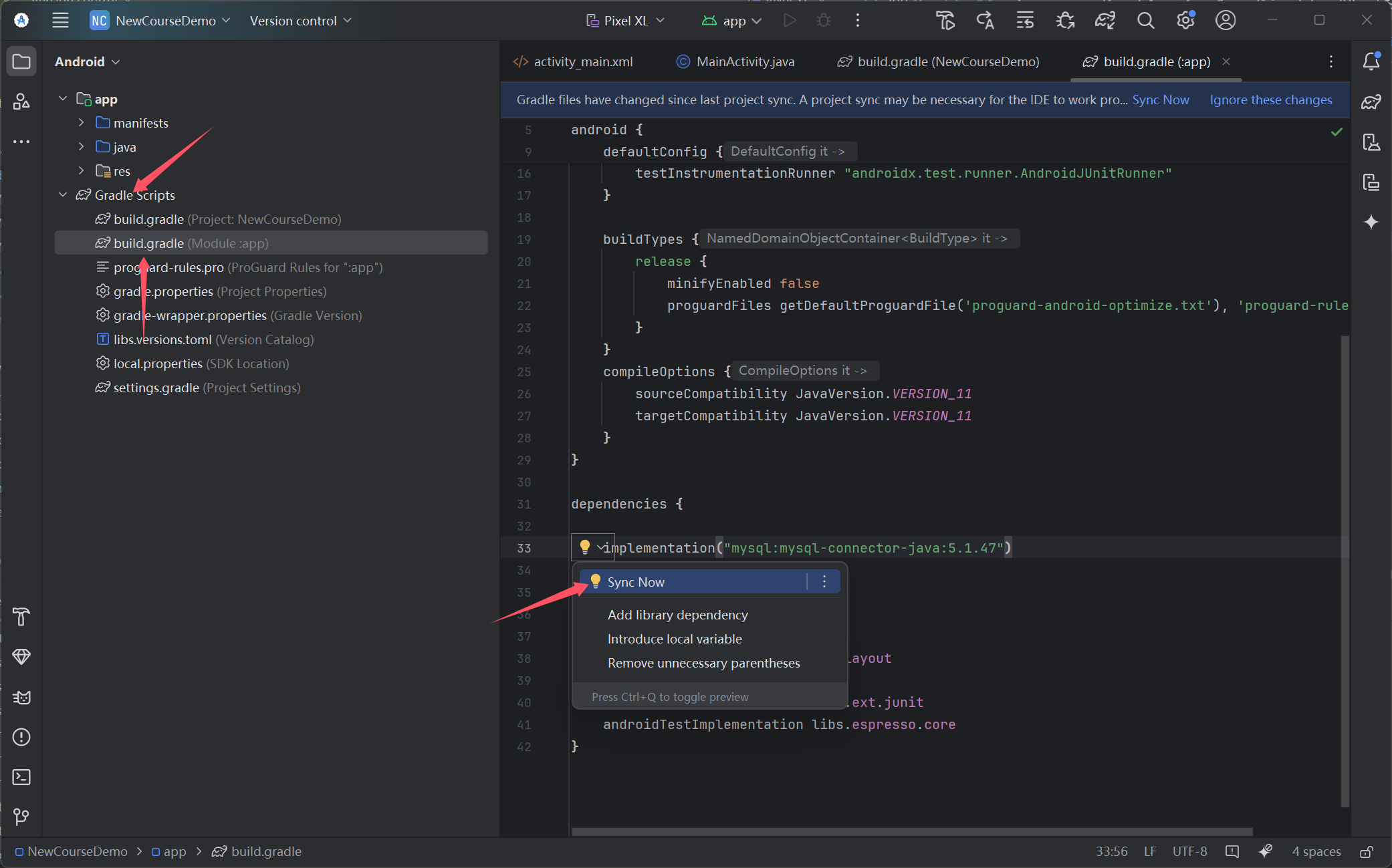 1.在项目根目录下的 build.gradle 文件中添加 MySQL 依赖项: