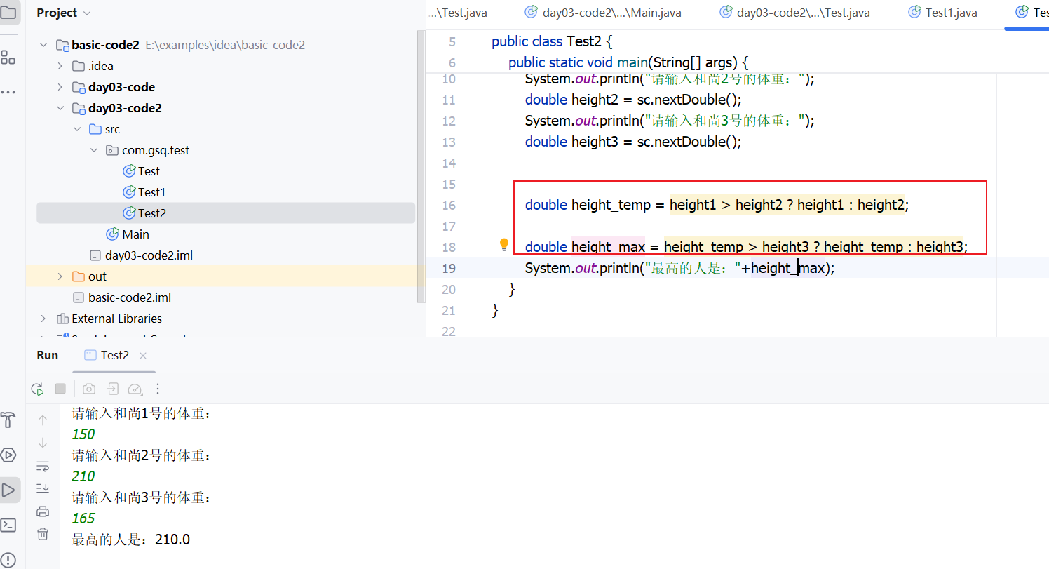 我的使用的是三个人输入不同的数据比较大小:(实际上题目已经告知)