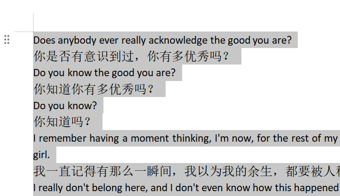 ②如何将ted的英文和中文文稿,全篇设置成一句一句对应的文章