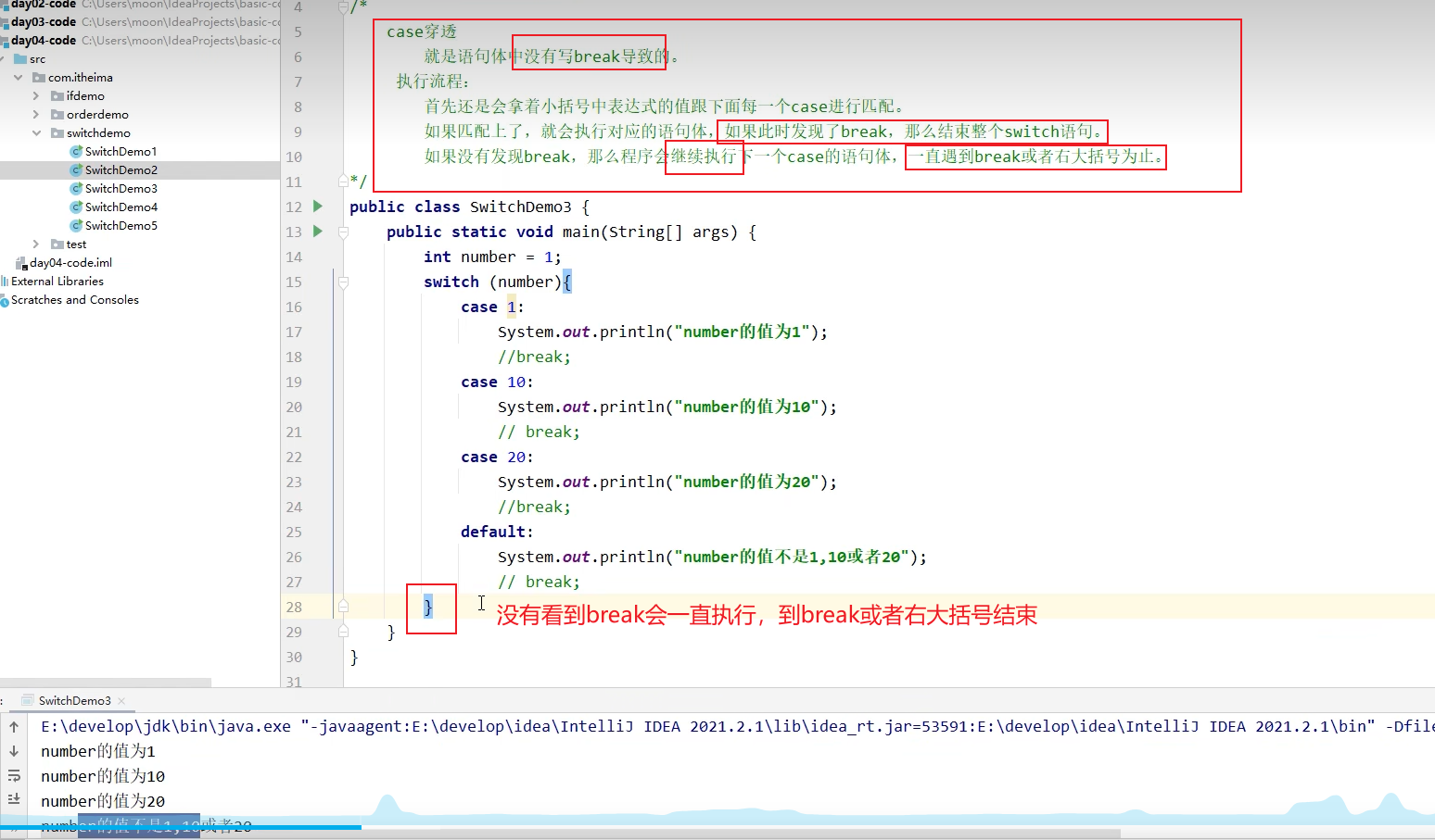 case穿透:(穿透是指程序从上往下依次执行:类似顺序执行代码)