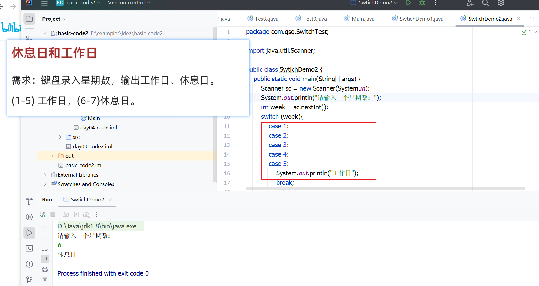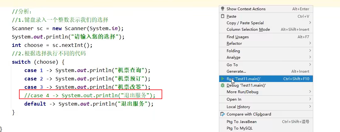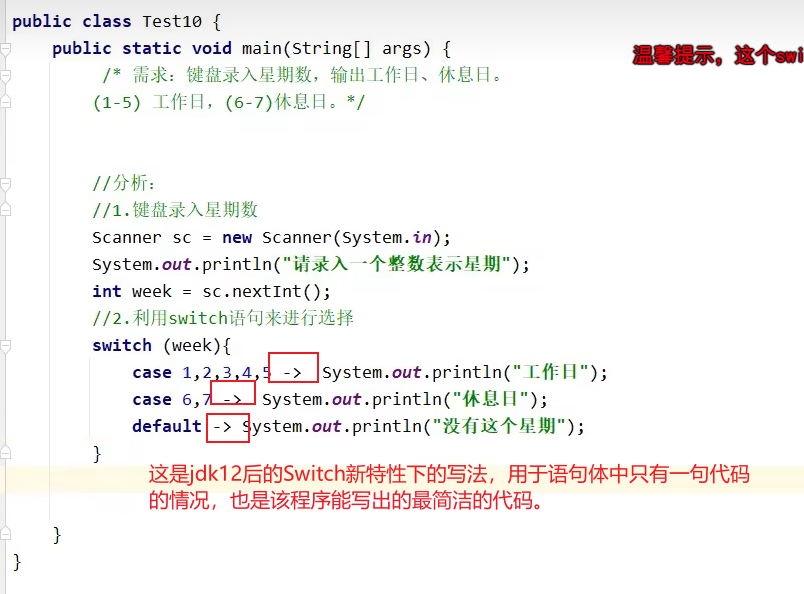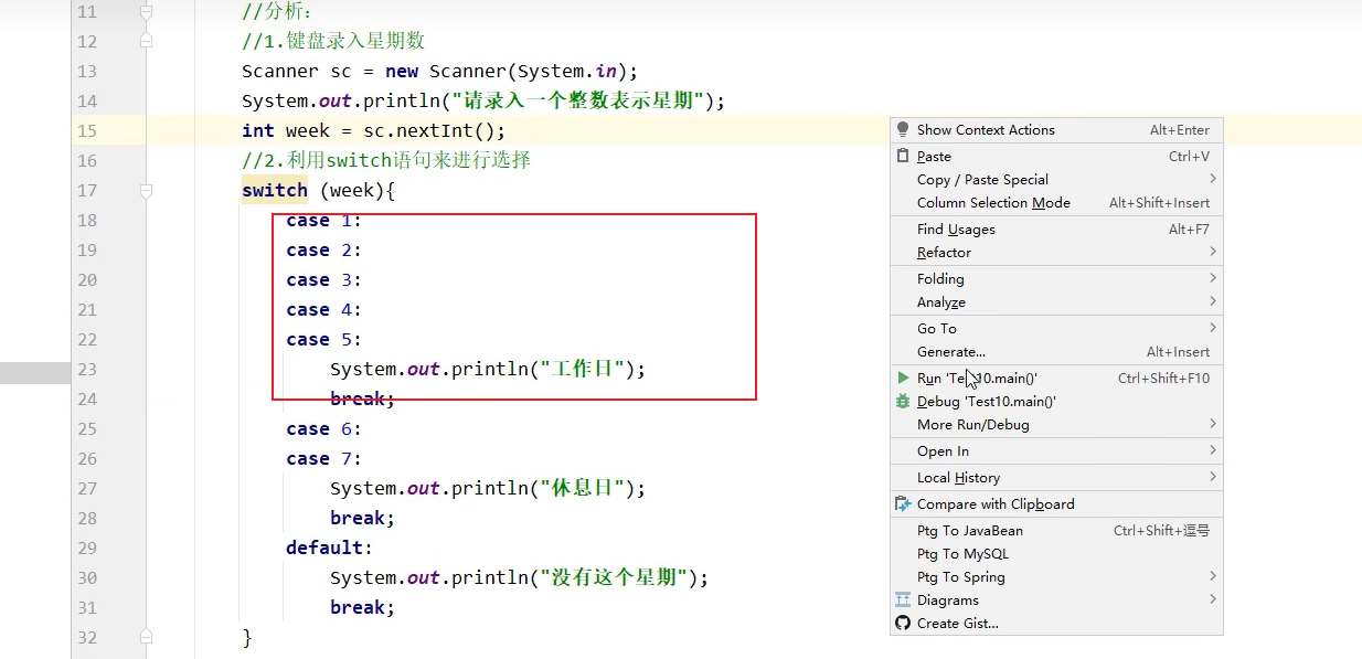 改写语句适用于:在Switch中,语句体重复的情况下,就可以使用case穿透去简化代码。