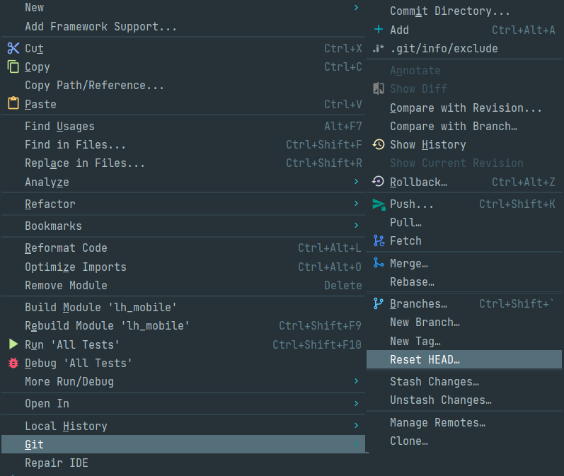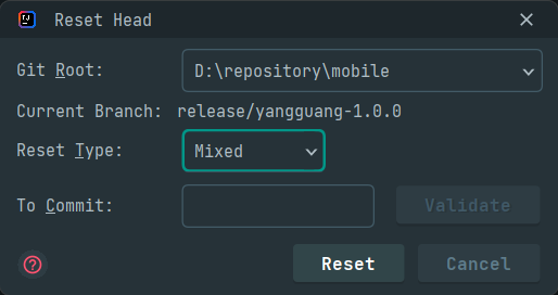 5.再次重复上一步操作,Reset Type 选择 Mixed,To Commit 填写复制的当前版本号,点击 Reset
