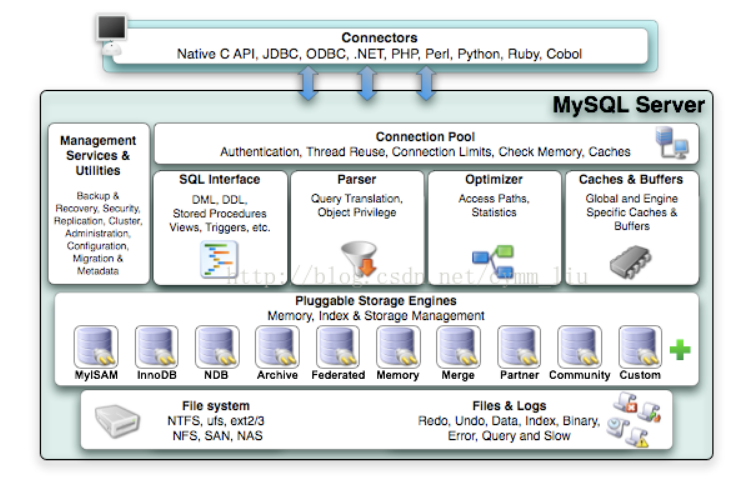 mysql 的架构可以在不同场景下应用并发挥良好作用,主要体现在存储引擎的架构上 mysql5.0+默认存储引擎未InnoDB