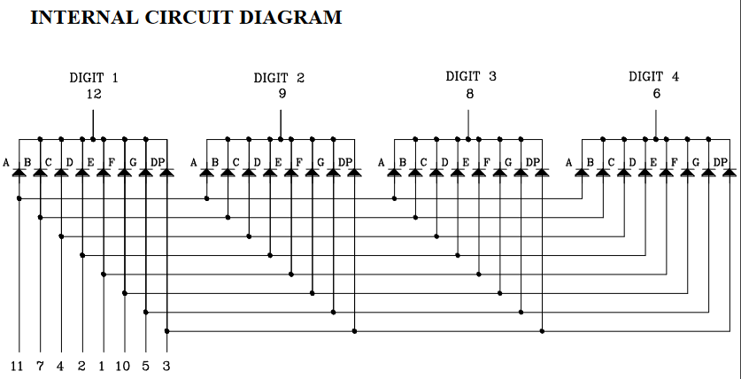 1. 如下是4 Digt数码管,外观和内部线路图,详情参考零件表:https://www.mouser.cn/ProductDetail/Lite-On/LTC-5723HR?qs=WxFF5lh7QM2ytJdX1EhJKQ%3D%3D