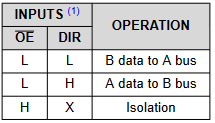 根据线路图,DIR接Vcc,/OE接GND,表示 ”A data to B data“