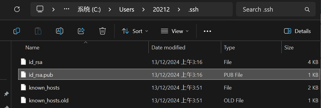 .ssh 文件夹下有 id_rsa 和 id_rsa.pub,前一个是私钥,后一个是公钥