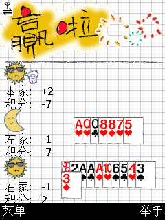 提示:1.如果你是触摸屏的手机,向上的手势为"出牌"。2.游戏中太阳代表玩家为男性、月亮代表玩家为女性、星星代表玩家性别为保密状态