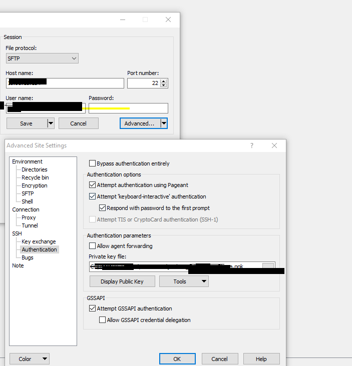 在advanced里的SSH,Authentication 里的private key file里加入ppk文件即可
