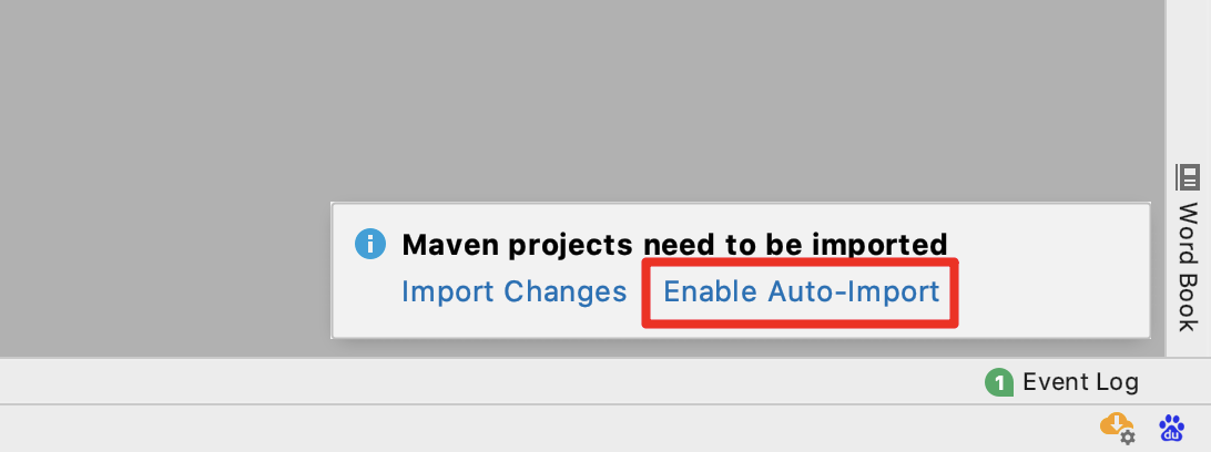 首先,不熟悉 Maven的同学注意了,在项目第一次打开的时候, IDEA会提示你是否导入依赖,建议你选择自动导入。