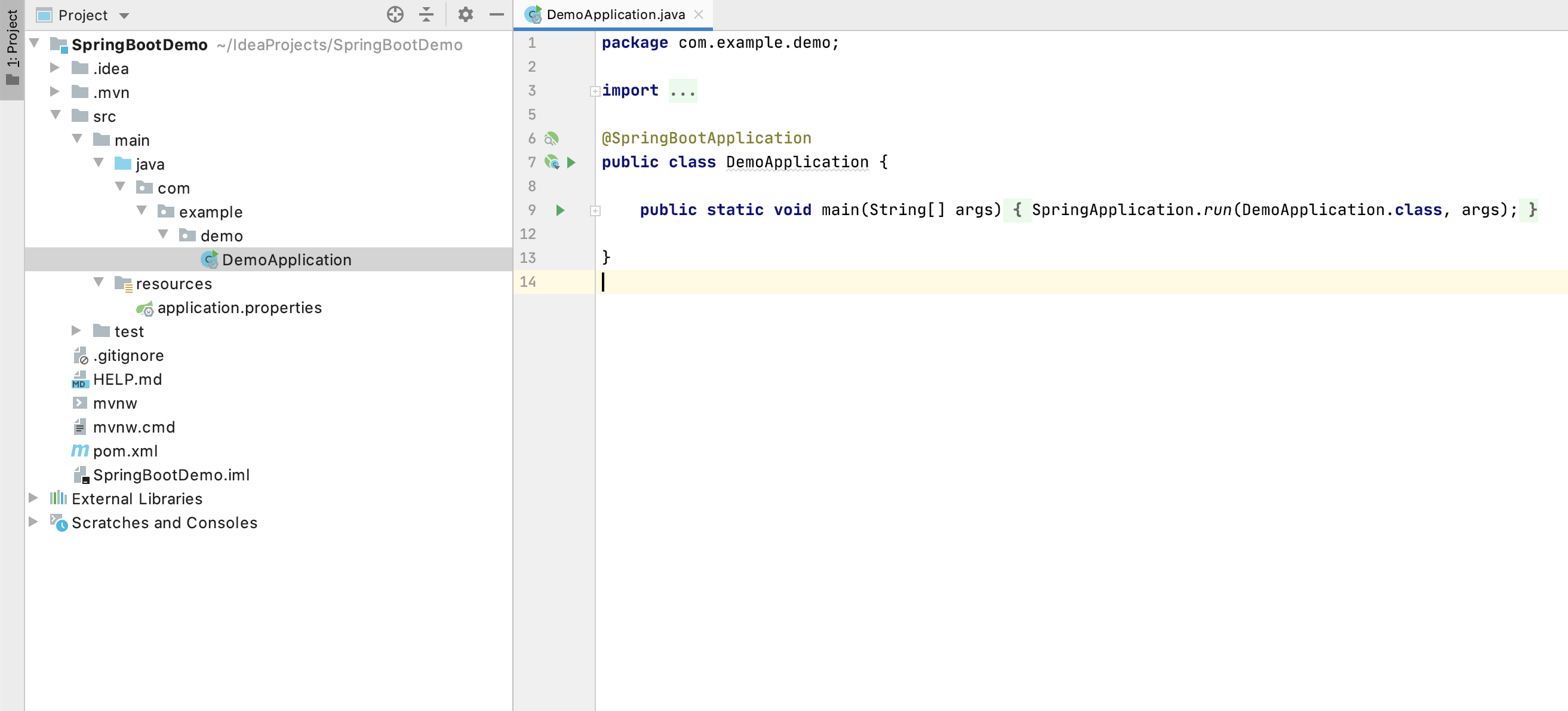 DemoApplication 就是 SpringBoot的启动类,直接 右键 > Run 运行一下试试
