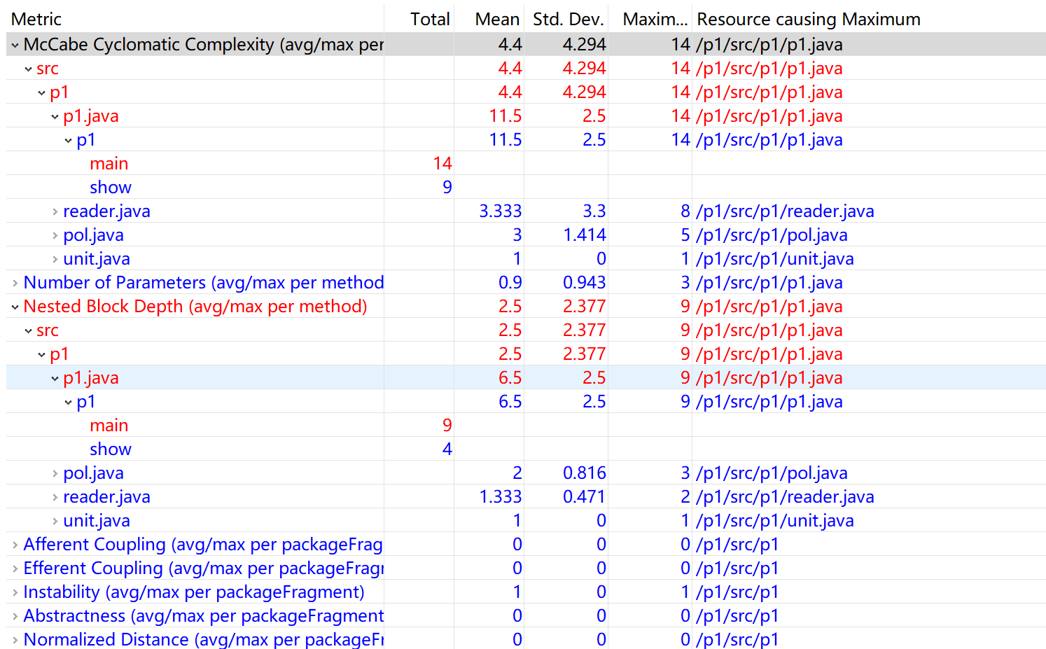 • 计算经典的OO度量,分析类的内聚和相互间的耦合情况