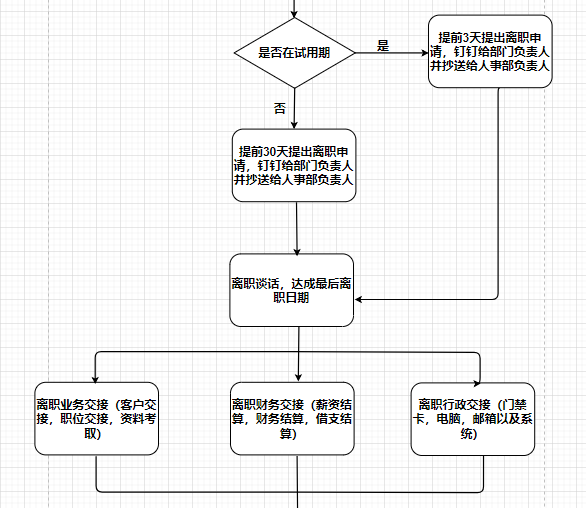 员工离职流程图离职类型包括:辞职、合同到期、辞退及退休第一类:辞职类员工离职流程图,待辞职员工,用人部门,人力资源部,正式员工提前一个月、,试用期员工提前三天填离职申请。公司的任意人力资源管理流程图,离职日期,领取并填写《离职交接表》确定员工离职日期《员工离职交接表》上签名确定资料整理归档,离...