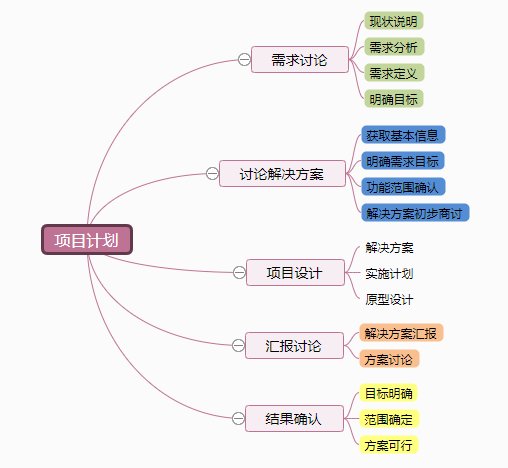 项目计划是根据对未来的项目决策,项目执行机构选择制定包括项目目标、工程标准、项目预算、实施程序及实施方案等的活动。制定项目计划思维导图旨在消除或减少不确定性; 改善经营效率; 对项目目标有更好的理解。项目计划思维导图用于协调所有项目计划编制文件、指导项目执行和控制的文件。