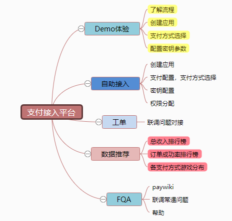 支付接入平台结构思维导图模板,里面总结了支付接入平台的形式,以及一些长遇见的问题,总结的比较详细。在不同的公司由于接入渠道和应用的差异,对支付产品分类略有不同。支付系统架构图: 整体上来说,从分层的角度,支付系统和普通的业务系统并没有本质的区别,也是应用、服务、接口、引擎、存储等分层。