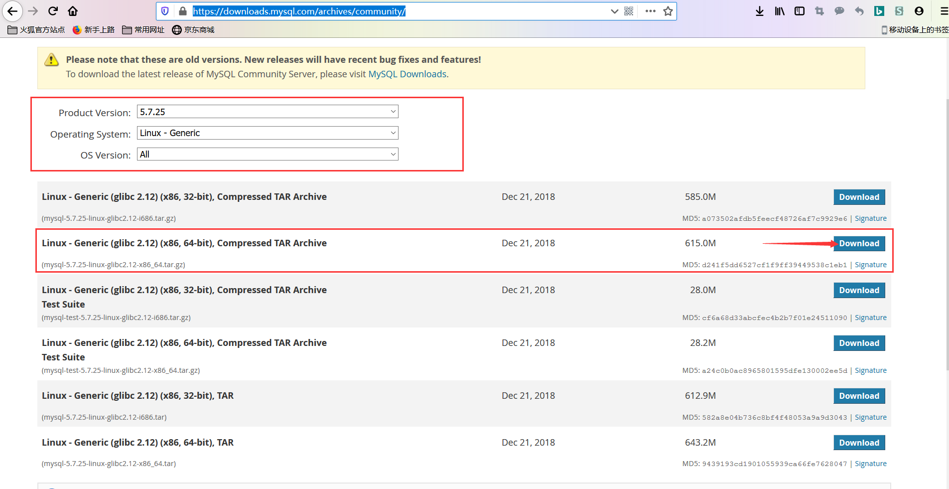 方法一 官方下载地址:https://downloads.mysql.com/archives/community/