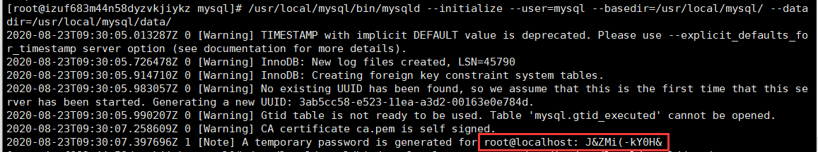 /usr/local/mysql/bin/mysqld --initialize --user=mysql --basedir=/usr/local/mysql/ --datadir=/usr/local/mysql/data/