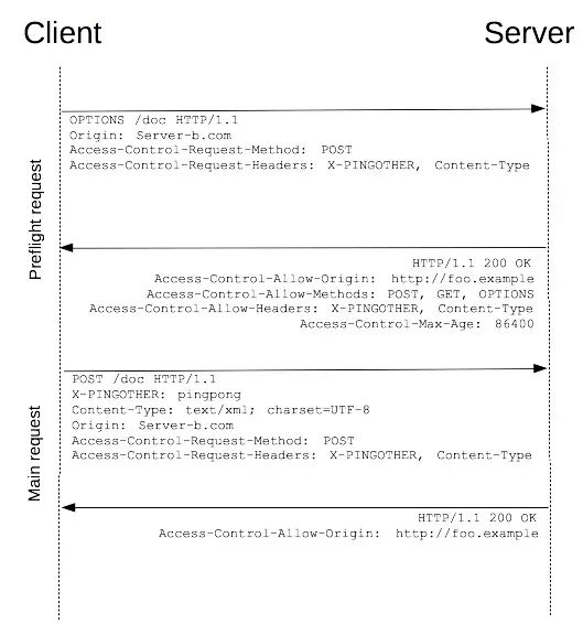 浏览器会在预检请求中,多发送两个字段Access-Control-Request-Method和Access-Control-Request-Headers,前者用于告知服务器实际请求所用的方法,后者用于告知服务器实际请求所携带的自定义请求首部字段。然后,服务器将根据请求头的信息来判断是否允许该请求。