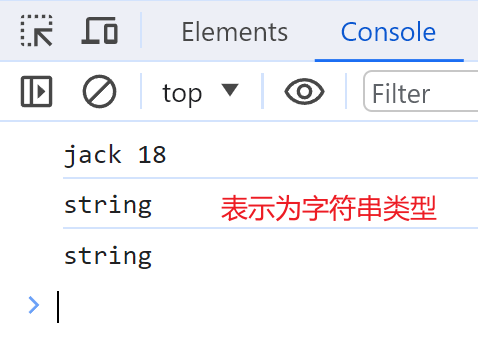console.log(typeof name); 注意:typeof 的作用是检测当前变量值的类型