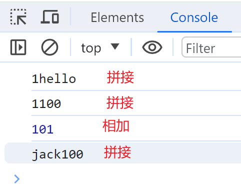 注意:只要+两边,有任意一个是字符串类型,那么+就是字符串拼接的作用