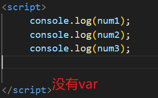 这样看起来仅仅只是变量值没有定义,那么下面这个例子,是在没有var声明情况下: