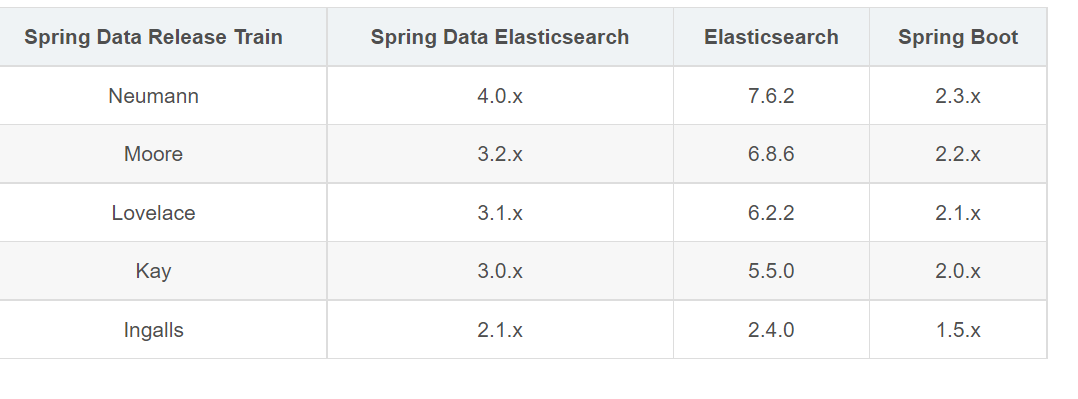 前提:如果把es放到spring boot,一定要注意版本问题,必看如下图: