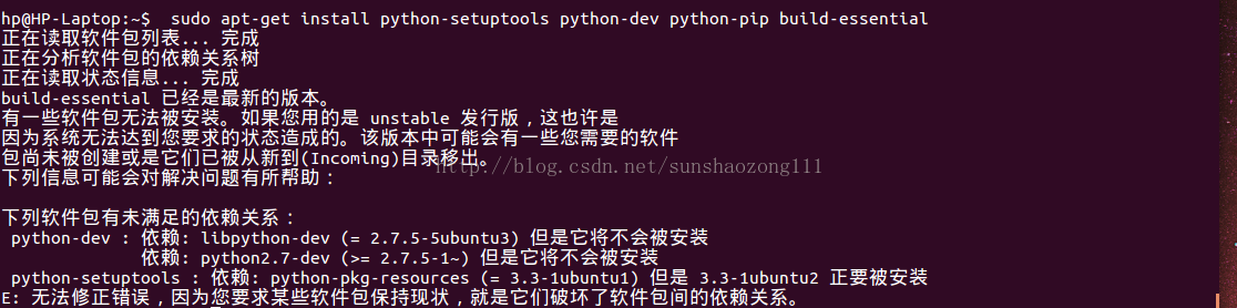 python-dev : 依赖:libpython-dev(=2.7.5-5ubuntu3)但是它将不会被安装