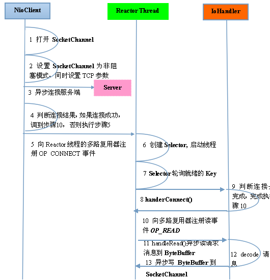 Netty架构按照Reactor模式设计和实现,它的服务端通信序列图如下: