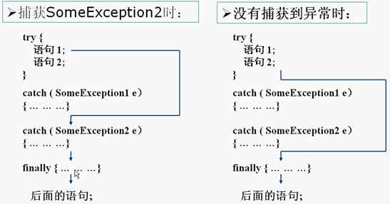 代码块,用于表明该catch块用于处理这种类型的代码块,多个catch块后面还可以跟一个finally块,用