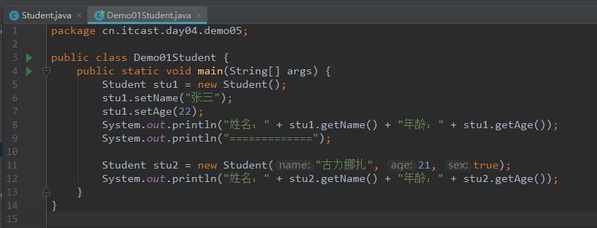 4、如果没有编写构造方法,编译器默认提供无参构造方法public Student(){ }