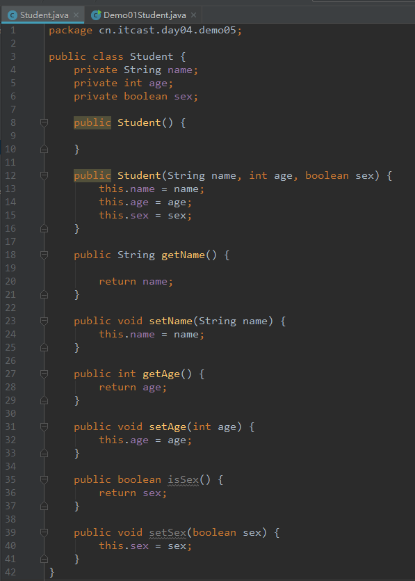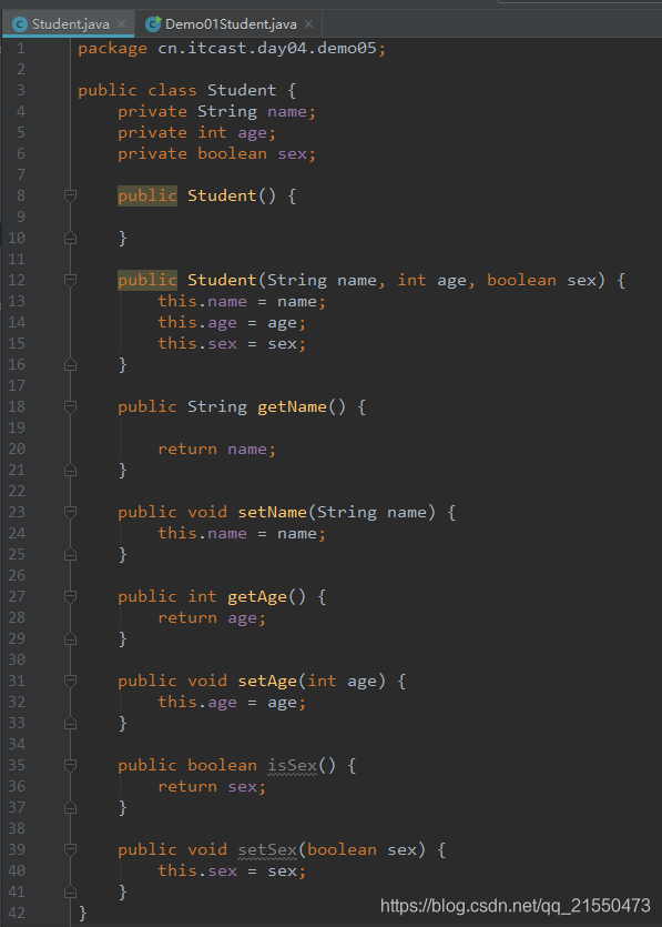 2、为每一个成员变量编写一对儿Getter/Setter方法