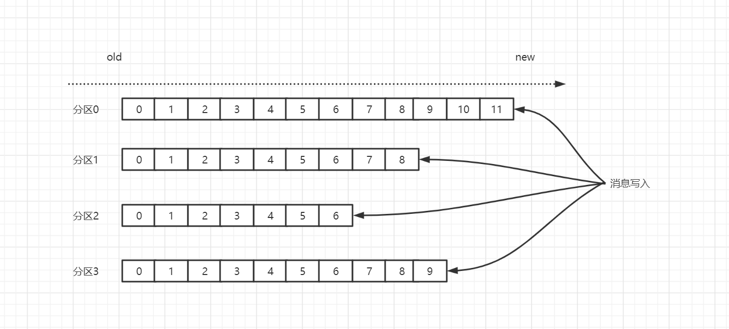 1.从上面partition可以看出,每个分区都是顺序写盘,这比随机写盘效率高。