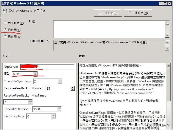 类型这里,默认值是NT5DS,貌似是NT5 DOMAIN SERVER,就是同步域控了。