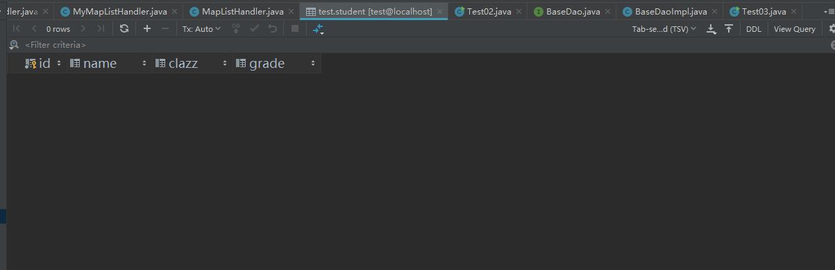 - StudentDaoImpl:StudentDao接口的实现类,用于写具体的功能实现代码