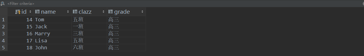package com.dreambamboo.test; import com.dreambamboo.dao.StudentDao; import com.dreambamboo.dao.impl.StudentDaoImpl; import com.dreambamboo.entity.Student; import java.util.List; public class Test { public static void main(String[] args) { StudentDao studentDao = new StudentDaoImpl(); //studentDao.insert(new Student("孙悟空","高三年级","五班")); //studentDao.update(new Student(14,"孙悟空111","高三年级","十一班")); //studentDao.delete(14); List<Student> list = studentDao.findAll(); for (Student st : list) { System.out.println(st.getId() + "===>>>" + st.getName() + "===>>>>" + st.getClazz() + "===>>> "+ st.getGrade()); } } }