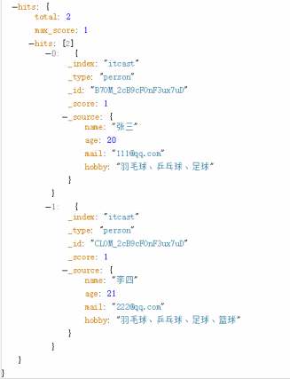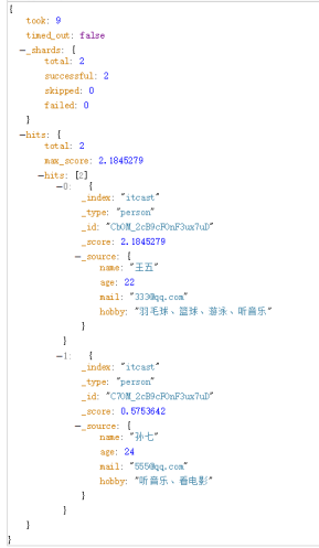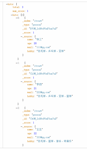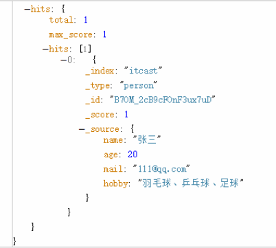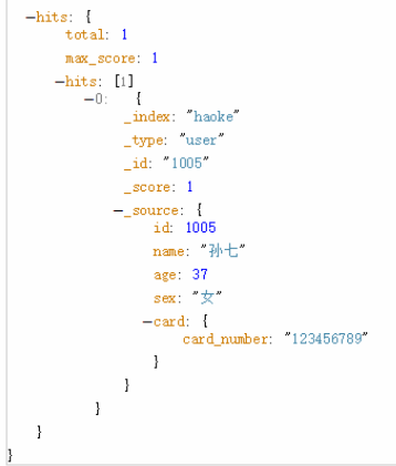 在Elasticsearch中,文档以JSON格式进行存储,可以是复杂的结构,如: