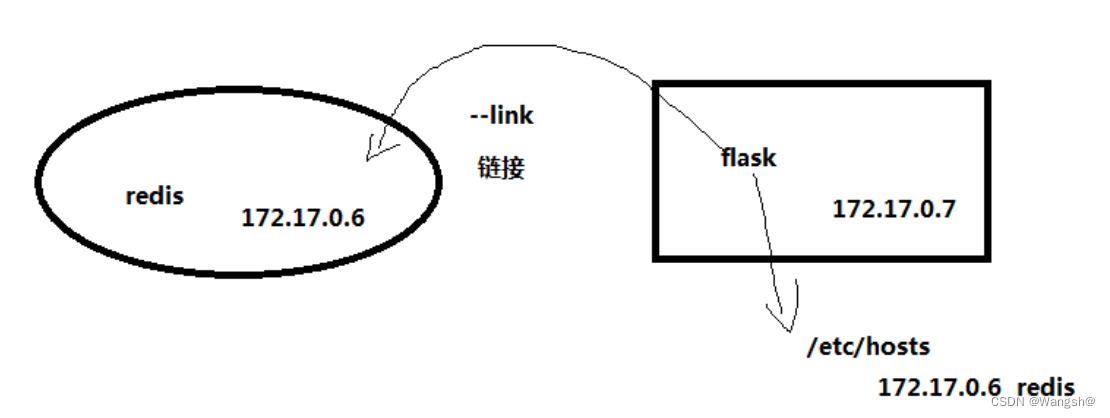 假设现在有一个redis容器和一个flask容器,flask容器需要访问redis容器,于是就在/etc/hosts文件里面添加一条域名映射,这样就可以通过域名来访问redis容器了
