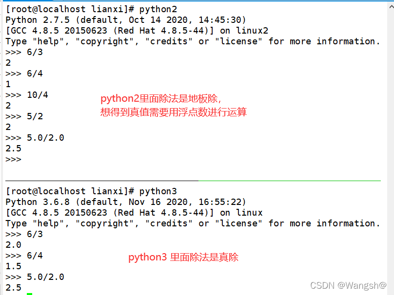 4.python2中的整数相除属于地板除,要想真除就得变成浮点数 python3中的整数相除就是真除